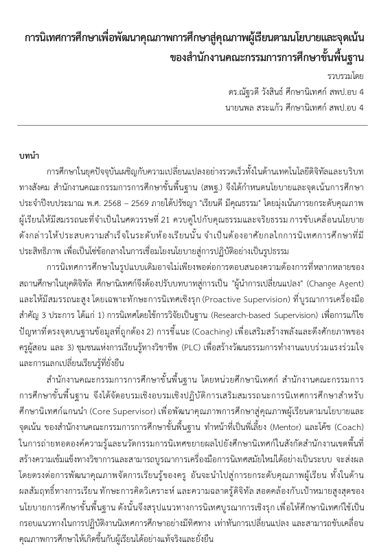 การนิเทศภายในโรงเรียนราชวินิตสุวรรณภูมิ
