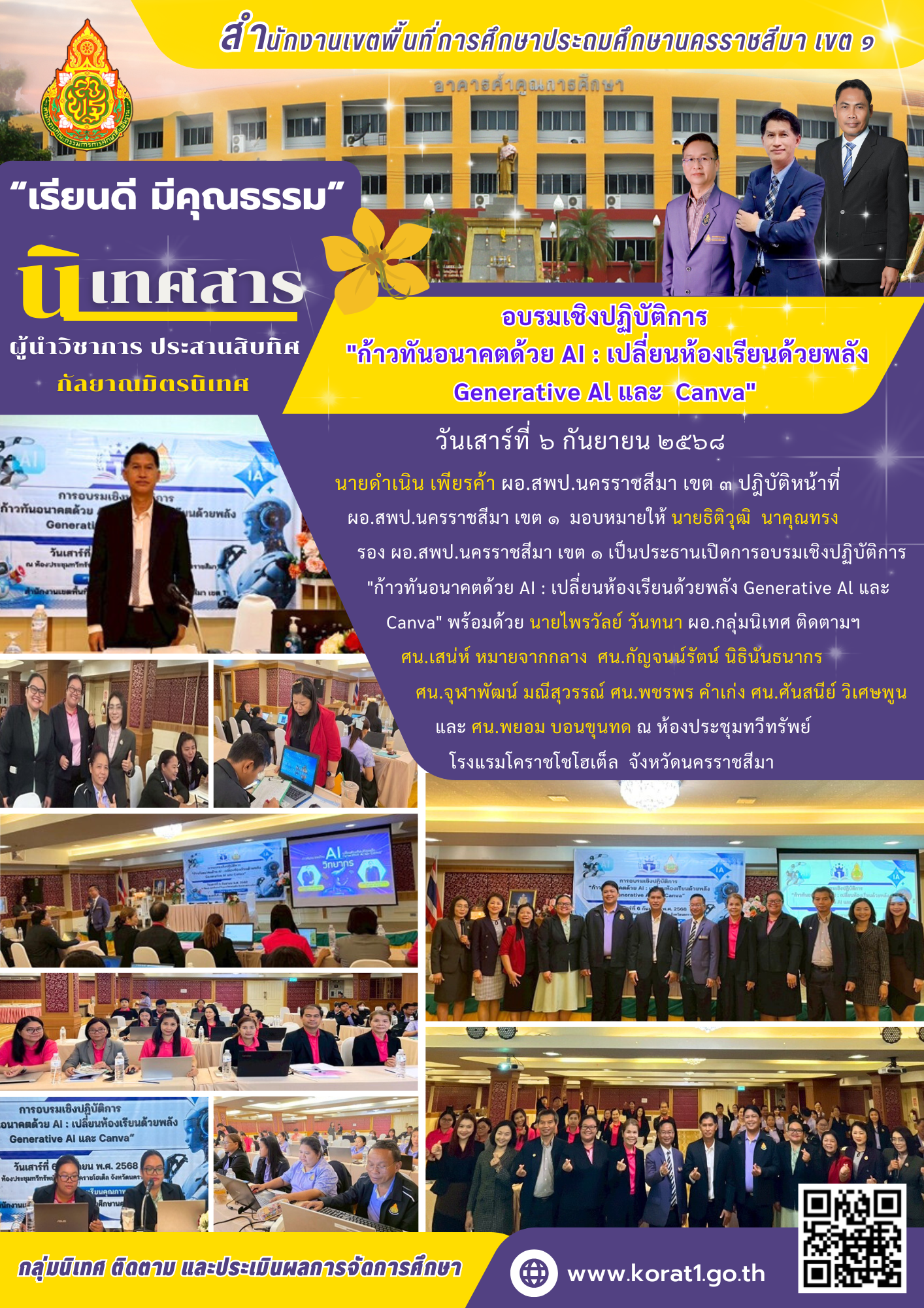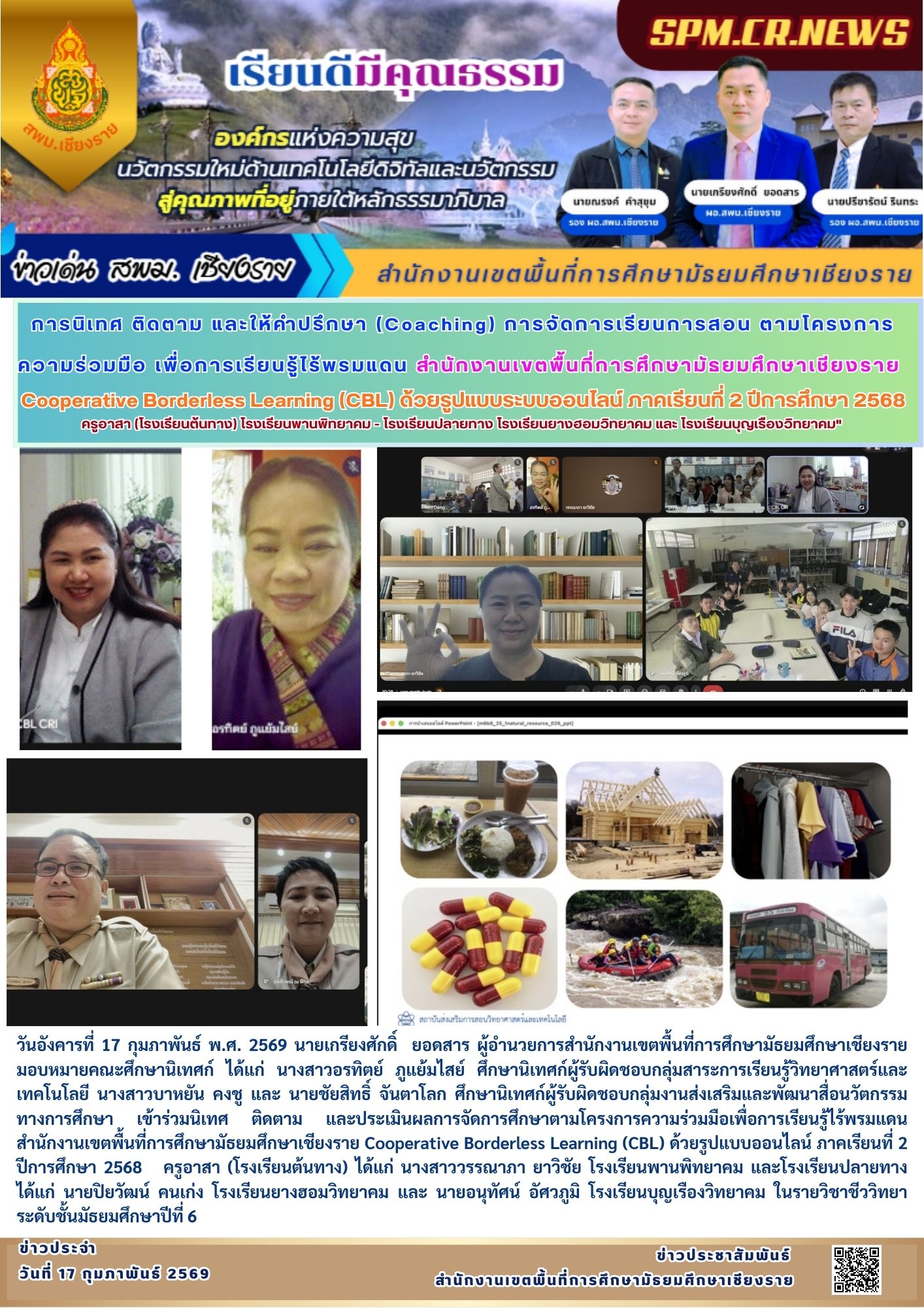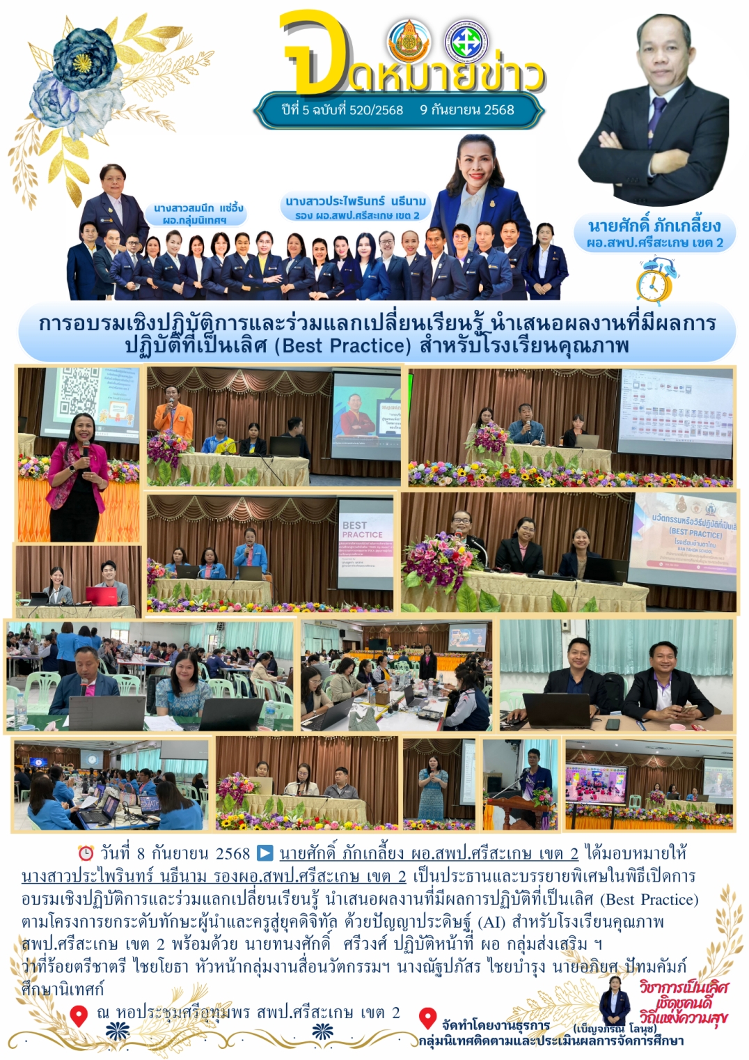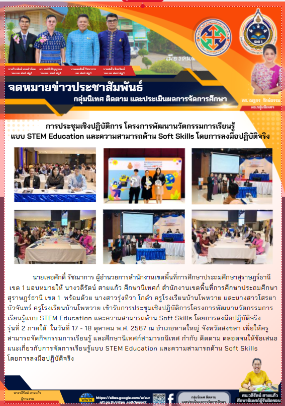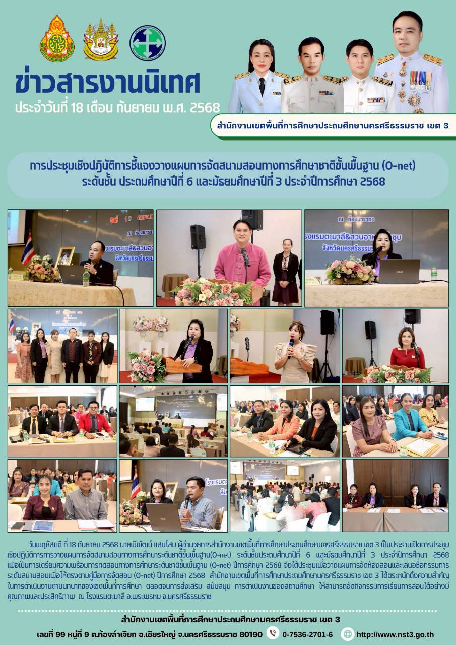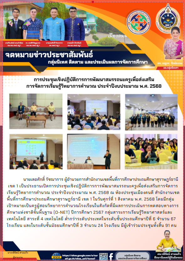 ที่ ศธ 0428/32 ลงวันที่ 28 มกราคม 2568 การประชุมเชิงปฏิบัติการพัฒนาแพลตฟอร์มการนิเทศเชิงรุก (Active Learning) เพื่อยกระดับคุณภาพผู้เรียนตามนโยบายเรียนดี มีความสุข ระหว่างวันที่ 17-19 กุมภาพันธ์ 2568
