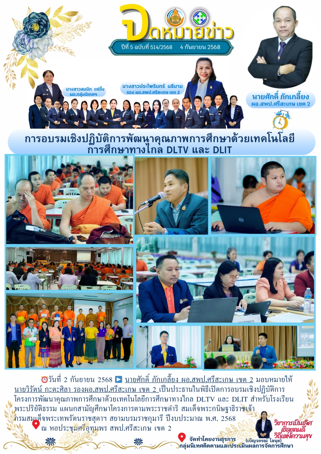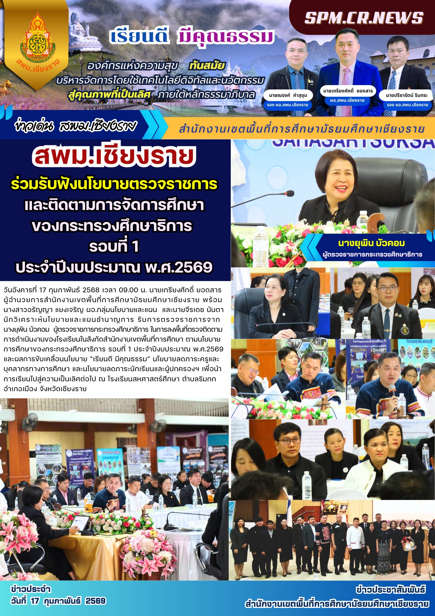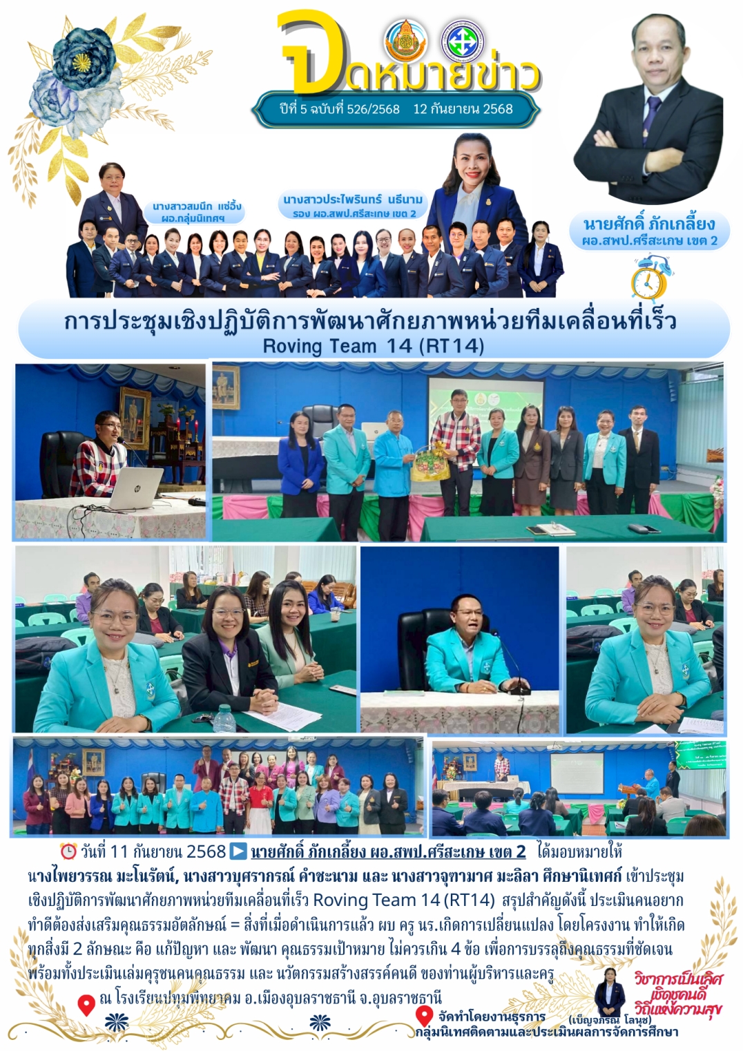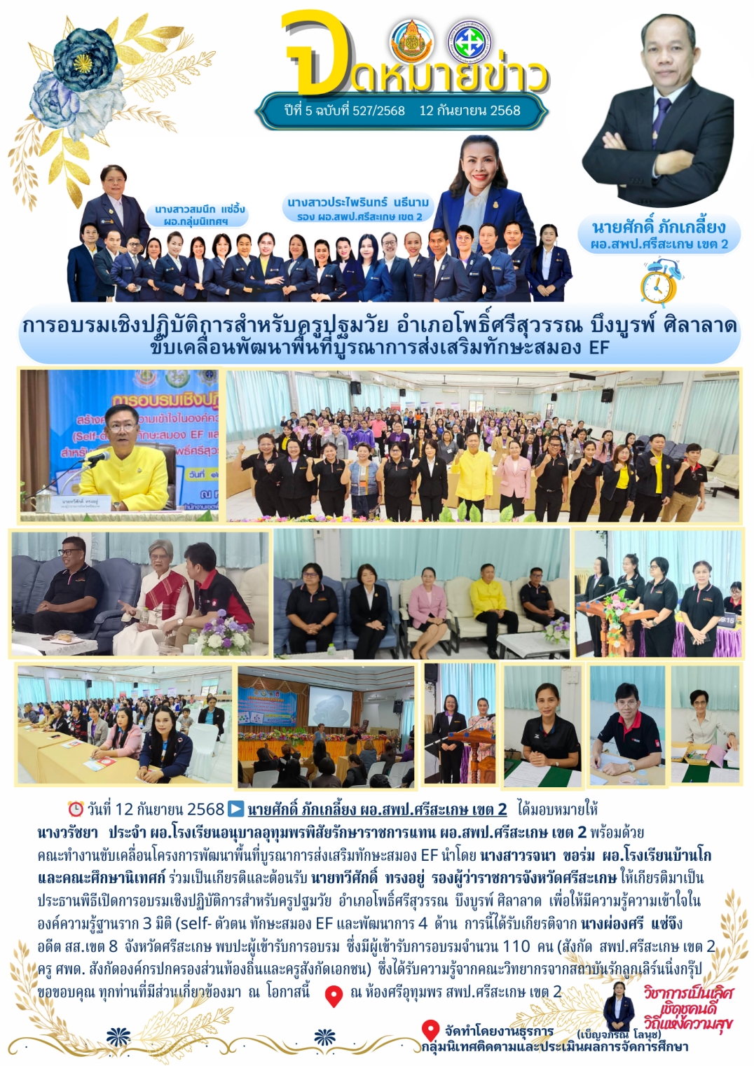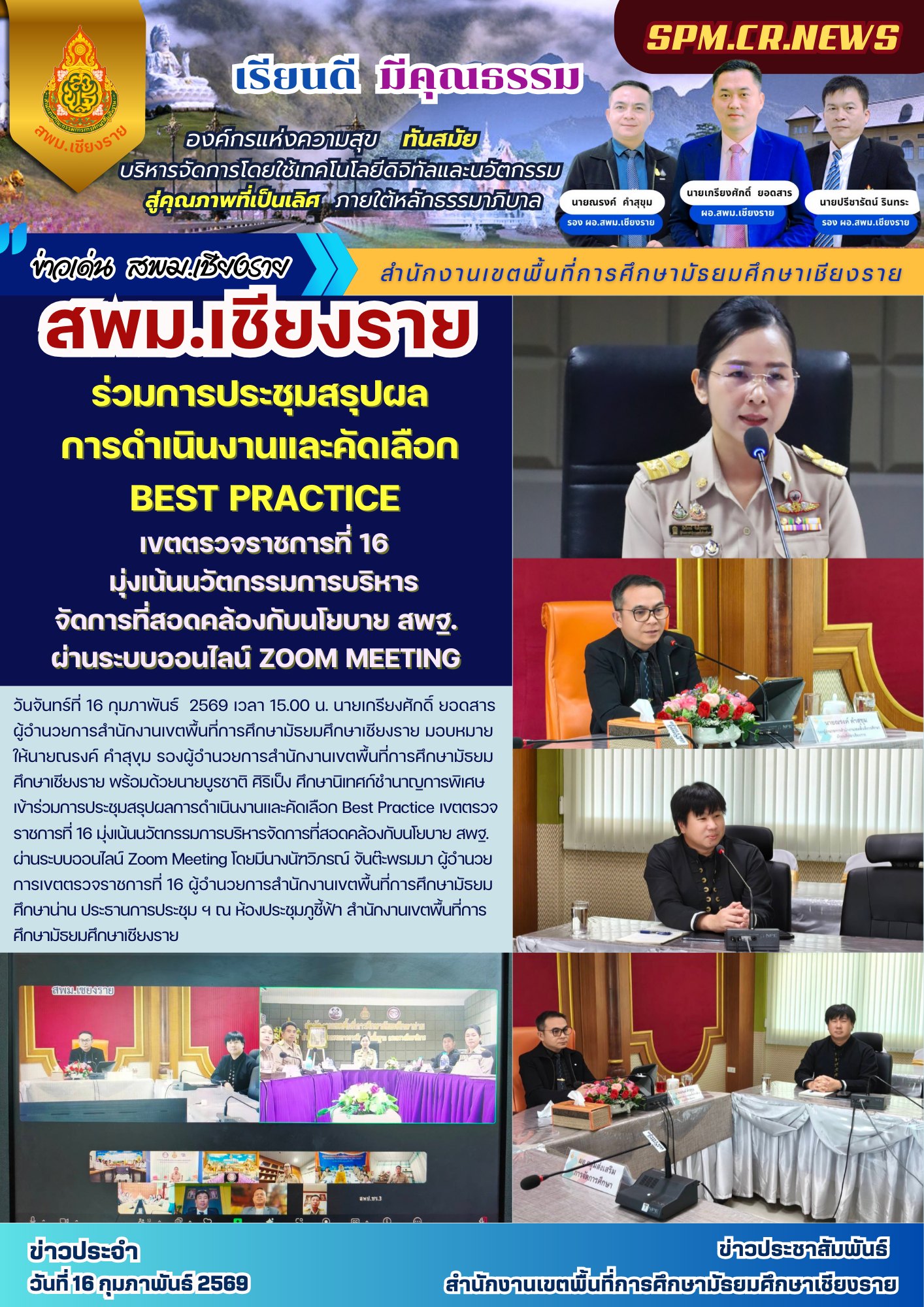 ที่ ศธ 0428/32 ลงวันที่ 28 มกราคม 2568 การประชุมเชิงปฏิบัติการพัฒนาแพลตฟอร์มการนิเทศเชิงรุก (Active Learning) เพื่อยกระดับคุณภาพผู้เรียนตามนโยบายเรียนดี มีความสุข ระหว่างวันที่ 17-19 กุมภาพันธ์ 2568