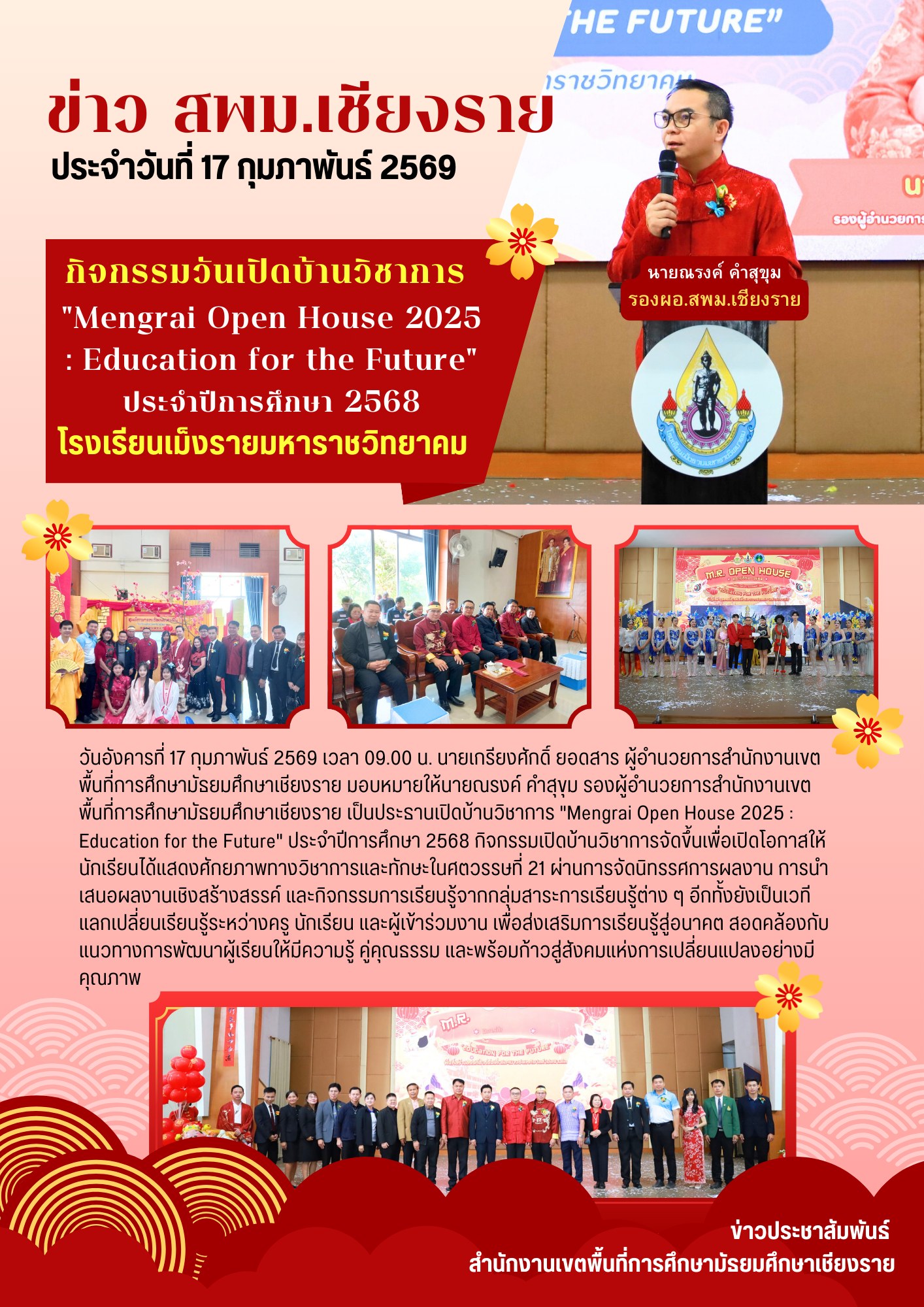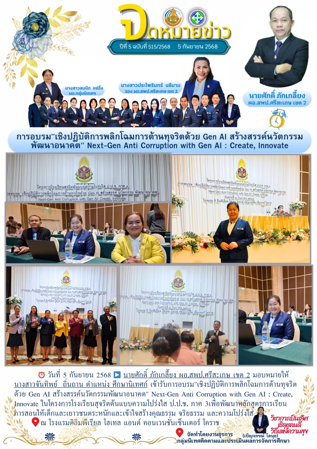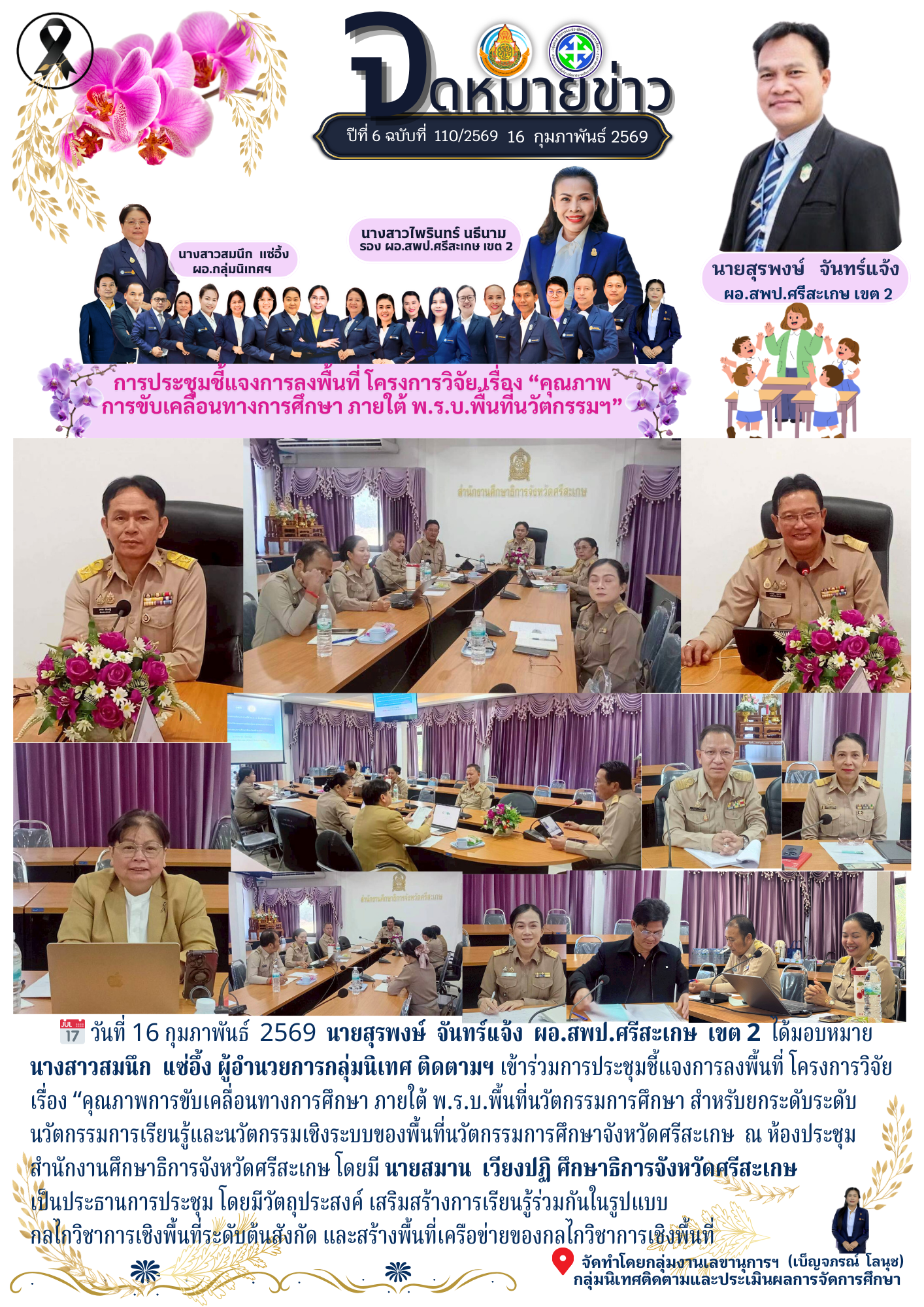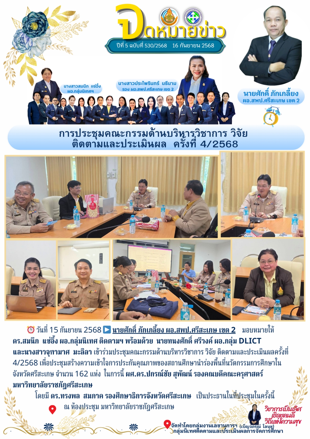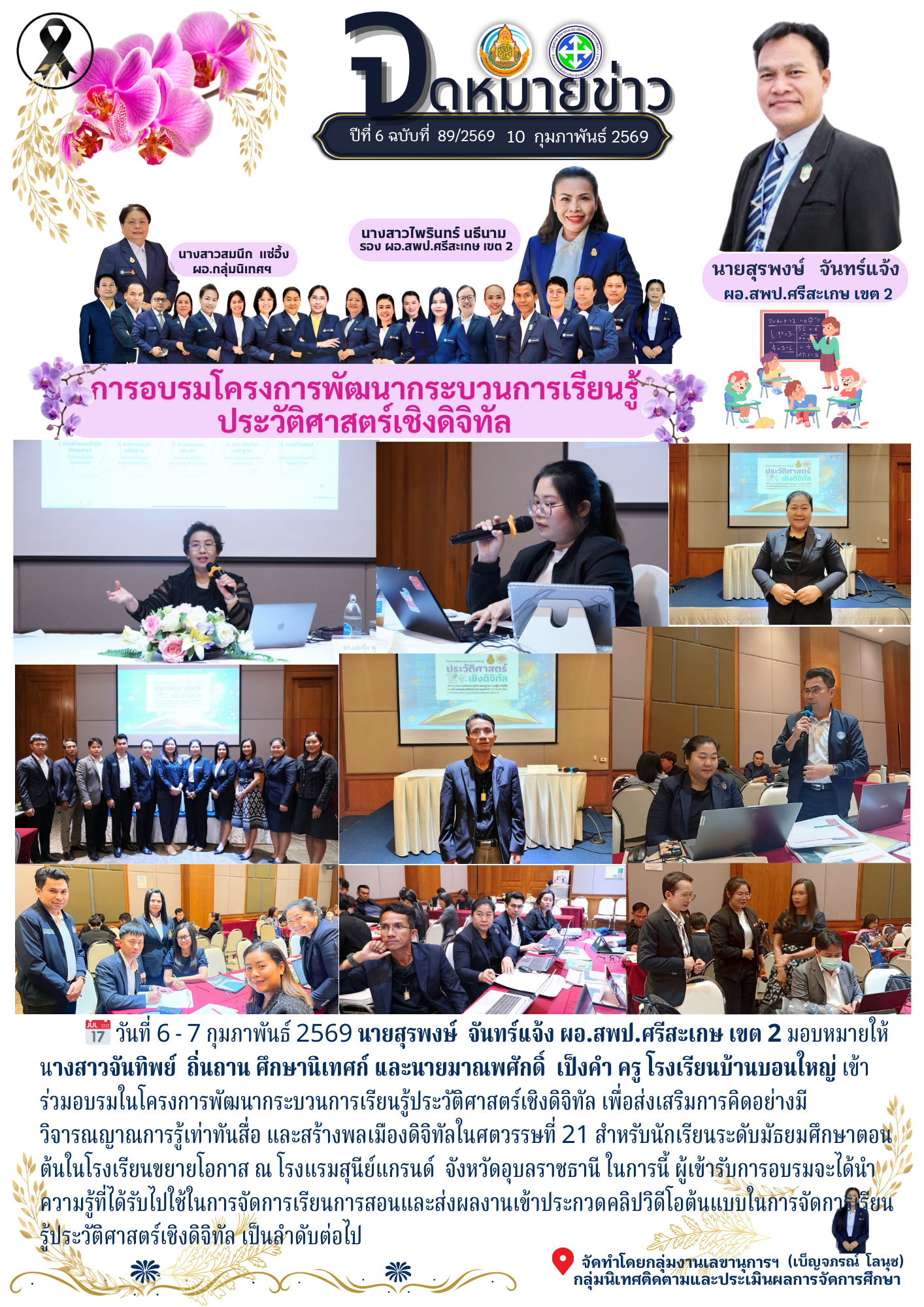 ที่ ศธ 0428/32 ลงวันที่ 28 มกราคม 2568 การประชุมเชิงปฏิบัติการพัฒนาแพลตฟอร์มการนิเทศเชิงรุก (Active Learning) เพื่อยกระดับคุณภาพผู้เรียนตามนโยบายเรียนดี มีความสุข ระหว่างวันที่ 17-19 กุมภาพันธ์ 2568