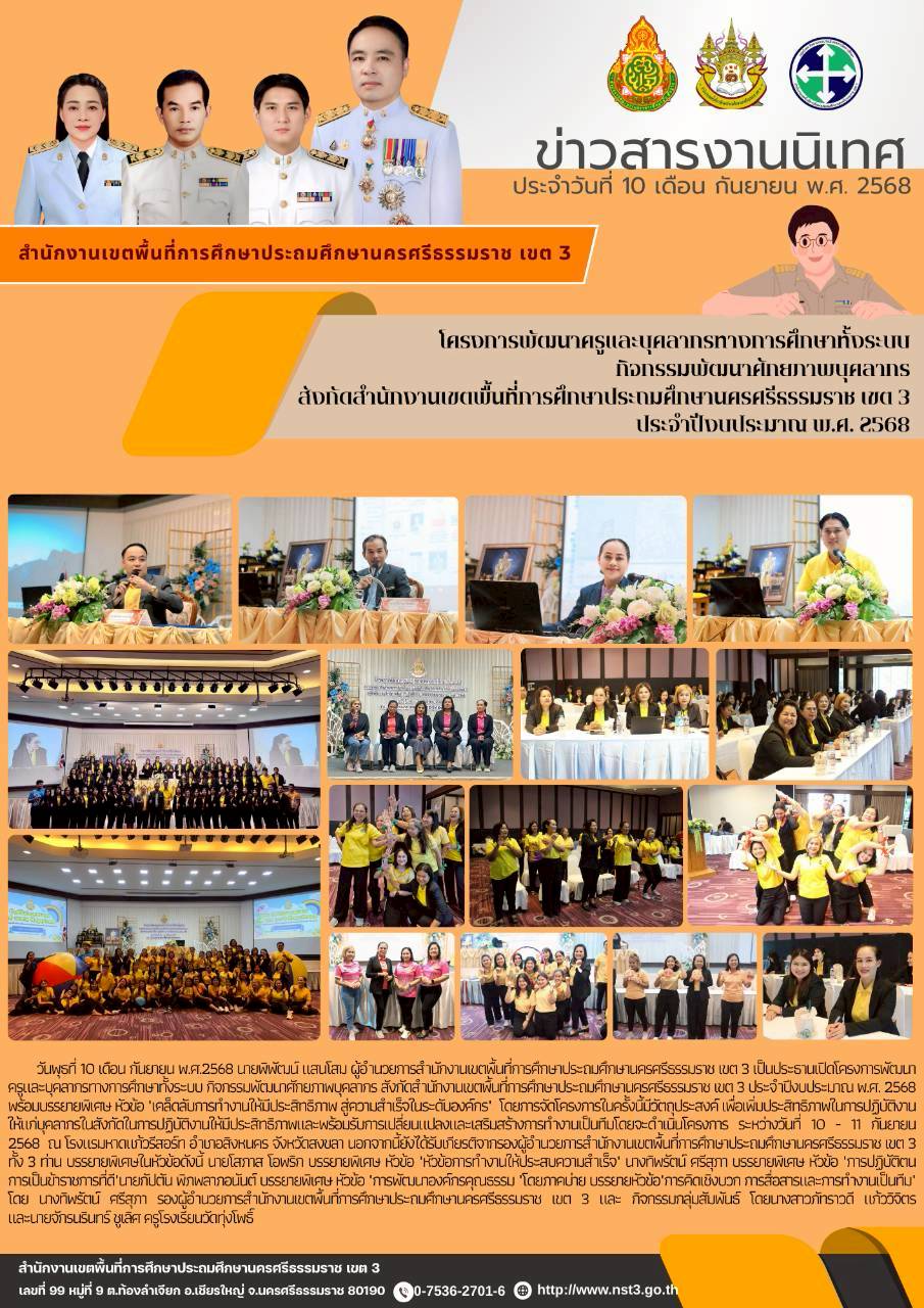 วันที่ 25-26 กันยายน 2568 หน่วยศึกษานิเทศก์ สำนักงานคณะกรรมการการศึกษาขั้นพื้นฐาน (ศนฐ.) นำโดย ดร.ปาริชาติ เภสัชชา หัวหน้าหน่วยศึกษานิเทศก์ สพฐ.พร้อมด้วย นางสาวหทัยนุช บุญเพลิง ศึกษานิเทศก์ เข้าร่วมการประชุมสัมมนาผู้อำนวยการสำนักงานเขตพื้นที่การศึกษา ทั่วประเทศ ครั้งที่ 1/2568 ณ โรงแรมรามาการ์เดน กรุงเทพมหานคร ศ.ดร.นฤมล ภิญโญสินวัฒน์ รัฐมนตรีว่าการกระทรวงศึกษาธิการ เป็นประธานในพิธี โดยท่านได้ให้ข้อคิดในการขับเคลื่อนวิชาประวัติศาสตร์และวิชาหน้าที่พลเมืองในการปลูกฝังให้นักเรียนได้รู้จักที่มาและความสำคัญของประวัติศาสตร์ชาติไทยและยังฝาก ผอ.เขตพื้นที่สนับสนุนให้ผู้บริหาร ครู มีวิทยฐานะที่สูงขึ้น