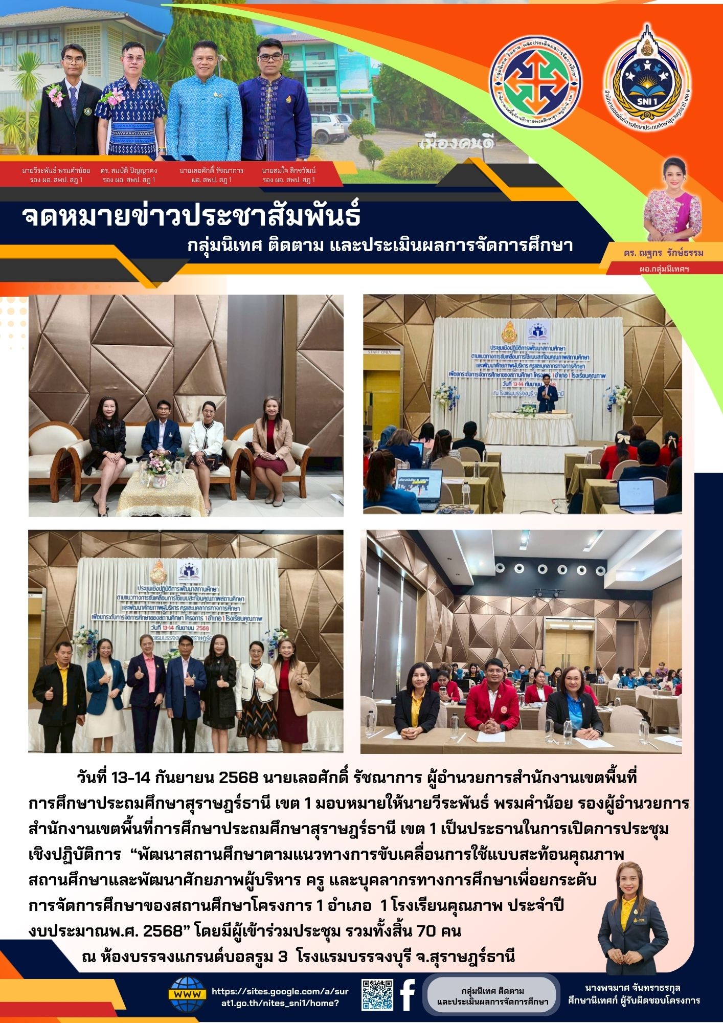 การประชุมสัมมนาทางวิชาการ แลกเปลี่ยนเรียนรู้และถอดประสบการณ์พัฒนา การนิเทศการศึกษา ตามนโยบาย “เรียนดี มีความสุข” ประจำปีงบประมาณ พ.ศ. 2568